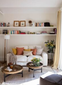 La mesa ratona debería ubicarse a unos 45 cm del sillón, puede ser de la misma altura que esté o tener